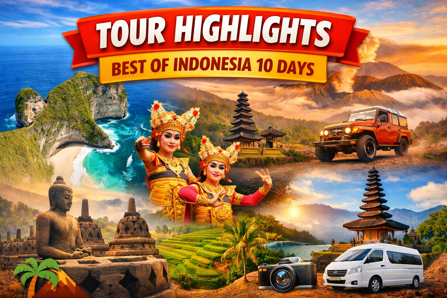 • Some destinations (Nusa Penida, Mount Bromo) require moderate walking on uneven terrain.